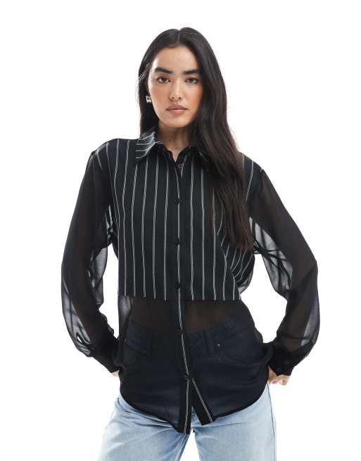 Camisa negra de mezcla de algodón y tejido transparente de ASOS DESIGN