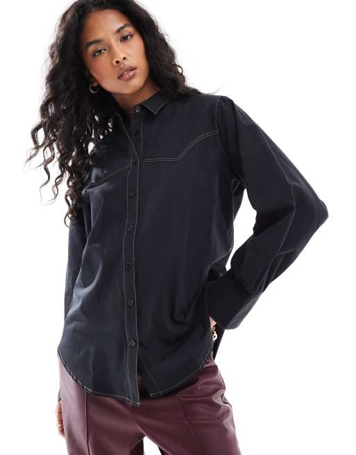 Camisa negra extragrande de estilo wéstern con pespuntes en contraste de ASOS DESIGN