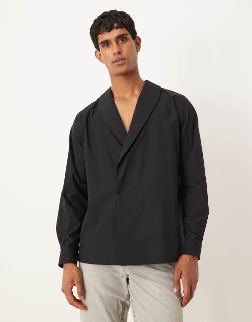 Camisa negra holgada con cuello esmoquin de ASOS DESIGN