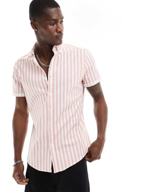 Camisa Oxford de corte slim elástico a rayas en rosa de ASOS DESIGN