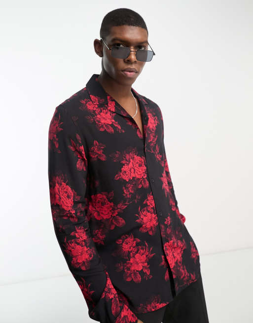 Camisa roja con estampado floral y cuello de solapas de ASOS DESIGN