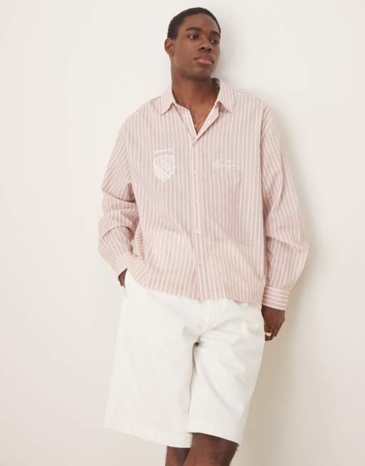 Camisa rosa a rayas con detalle bordado de tejido efecto lino de ASOS DESIGN