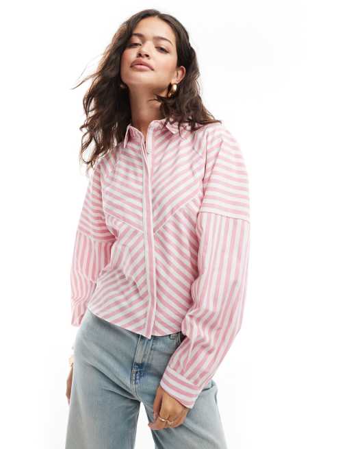 Camisa rosa a rayas con hombros voluminosos y diseño dividido de ASOS DESIGN