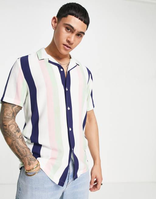 Camisa rosa y verde holgada a rayas retro con solapas de ASOS DESIGN