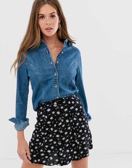 Camisa vaquera estilo western ajustada en azul lavado medio de ASOS DESIGN