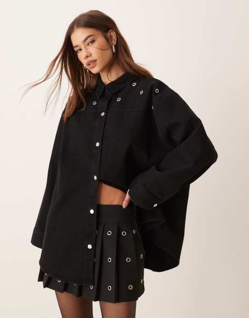 Camisa vaquera negra extragrande con detalle de ojales de ASOS DESIGN