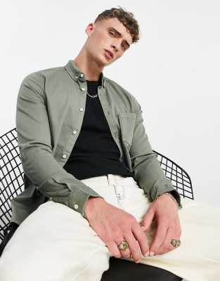 Camisa vaquera verde de corte slim de ASOS DESIGN