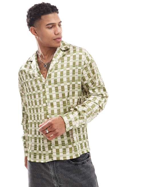 Camisa verde de corte cuadrado holgado con estampado geométrico y cuello de solapas de ASOS DESIGN