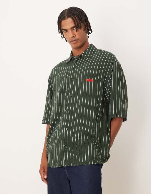 Camisa verde oscuro a rayas extragrande con bordado en el pecho de ASOS DESIGN