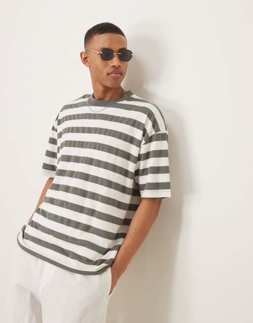 Camiseta a rayas blancas y caquis extragrande de ASOS DESIGN