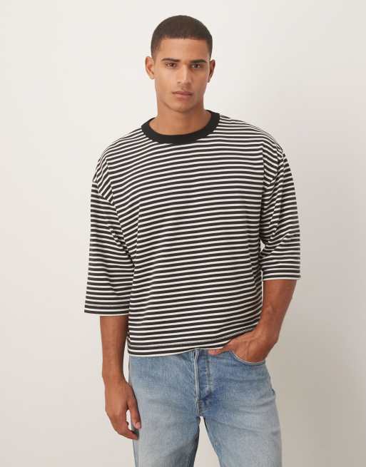 Camiseta a rayas blancas y negras de corte cuadrado extragrande con media manga de tejido grueso de ASOS DESIGN