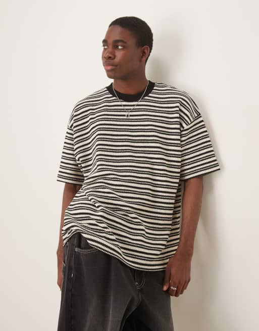 Camiseta a rayas blancas y negras texturizadas de corte extragrande de ASOS DESIGN