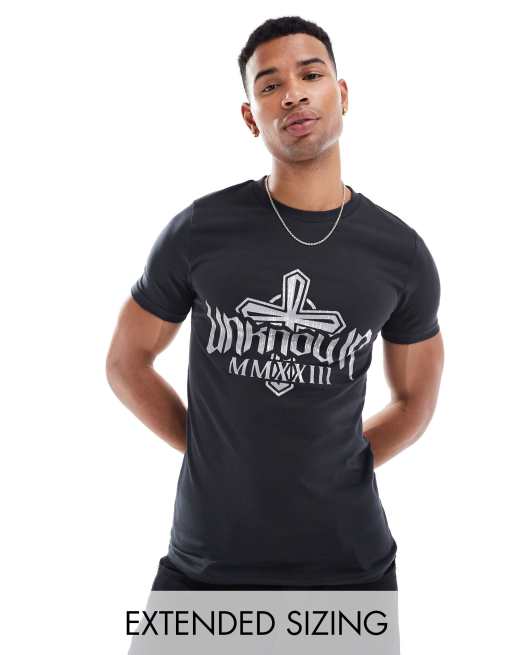 Camiseta ajustada con estampado metalizado de cruz de ASOS DESIGN
