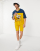 Camiseta amarilla y azul marino extragrande con diseño color block, cuello de pico y estampado "Utah" de ASOS DESIGN (parte de un conjunto)