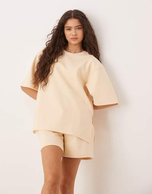 Camiseta amarillo pastel con abertura lateral de punto interlock de ASOS DESIGN (parte de un conjunto)
