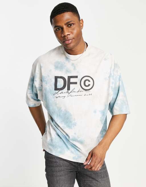 Camiseta azul extragrande con diseño lavado multicolor y logo estampado en la parte delantera de ASOS Dark Future