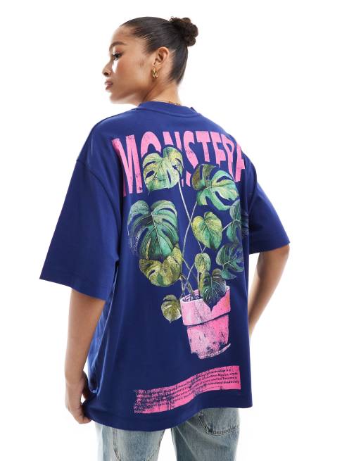 Camiseta azul extragrande con estampado gráfico "Monstera" de ASOS DESIGN