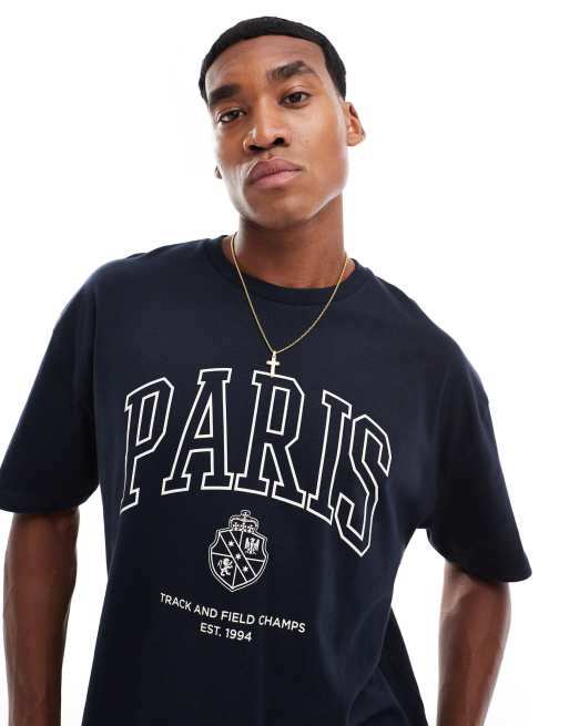 Camiseta azul marino de corte cuadrado extragrande con estampado delantero Campus de ASOS DESIGN