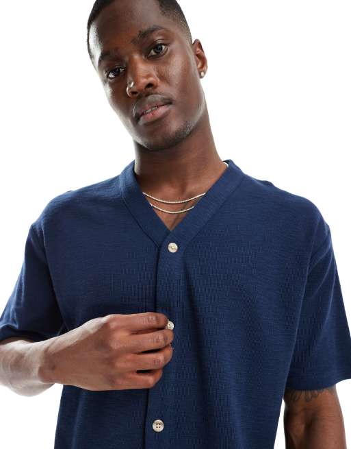 Camiseta azul marino de estilo béisbol de tejido gofrado de ASOS DESIGN