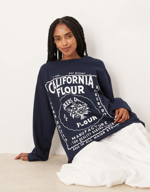 Camiseta azul marino de manga larga y corte skater con estampado gráfico "California" de ASOS DESIGN