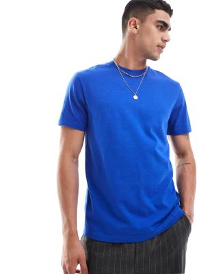 Camiseta azul medio con cuello redondo de tejido grueso de ASOS DESIGN