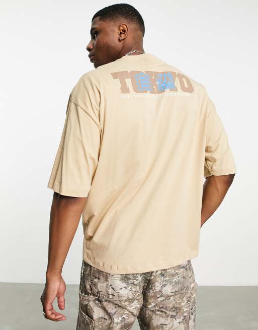 Camiseta beis extragrande con texto "Tokyo" estampado en la espalda de ASOS DESIGN