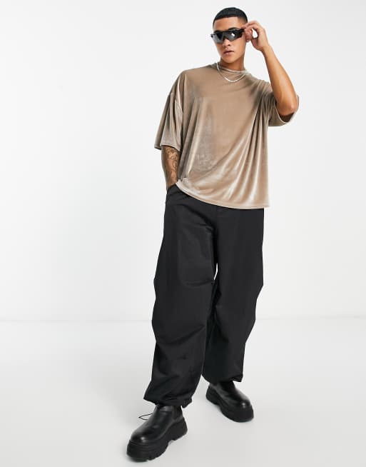 Camiseta beis extragrande de velour de ASOS DESIGN