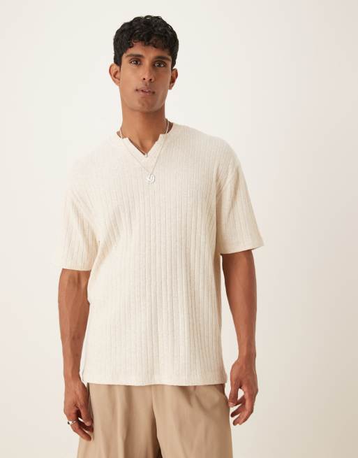 Camiseta beis holgada con detalle de muesca de ASOS DESIGN