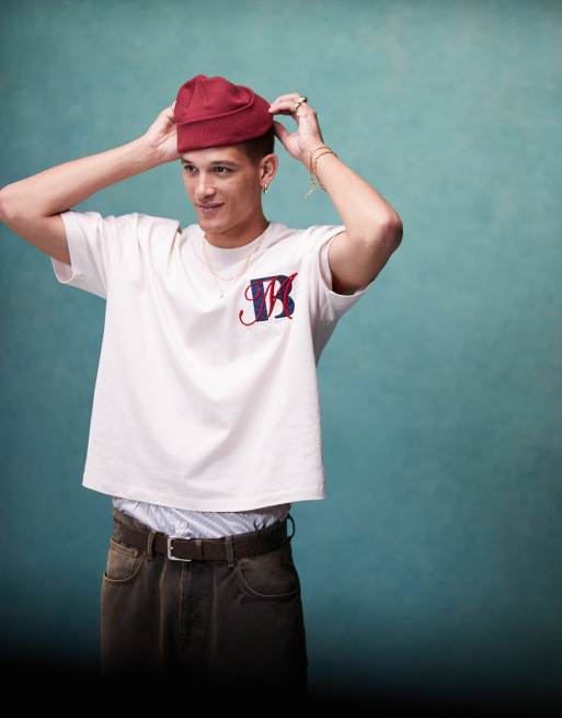 Camiseta beis lavado de corte cuadrado extragrande con estampado en el pecho de tejido grueso de 220 g/m2 de ASOS DESIGN