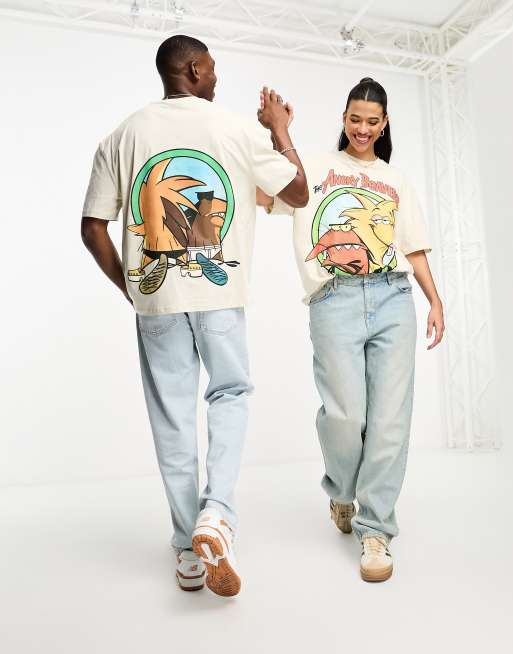 Camiseta beis unisex extragrande con estampado gráfico con licencia de "Los castores cascarrabias" de ASOS DESIGN