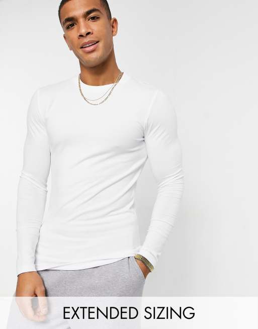 Camiseta blanca ajustada de manga larga con cuello redondo de mezcla de algodón orgánico de ASOS DESIGN