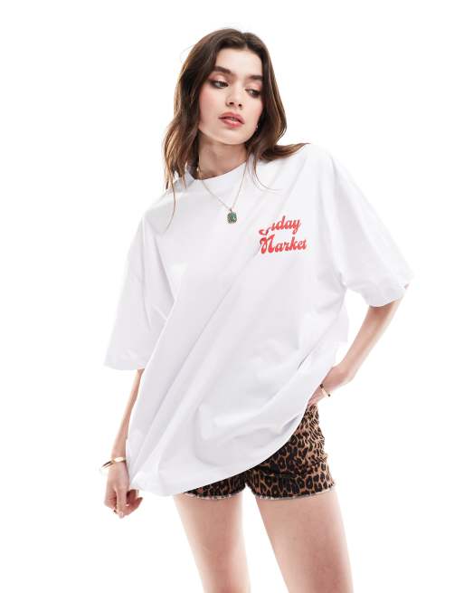 Camiseta blanca de corte boyfriend con estampado gráfico en relieve "Fresh Fleurs Sunday Market" de ASOS DESIGN