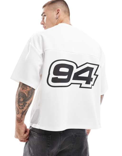 Camiseta blanca de corte cuadrado extragrande con estampado delantero y trasero de malla deportiva de ASOS DESIGN
