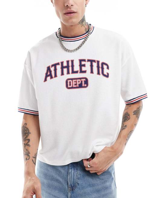 Camiseta blanca de corte cuadrado extragrande con estampado deportivo universitario en el pecho de ASOS DESIGN