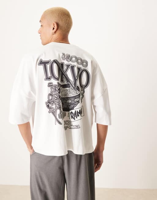 Camiseta blanca de corte cuadrado extragrande con estampado trasero de tejido grueso de 240 g/m² de ASOS DESIGN