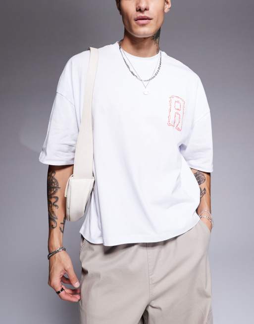 Camiseta blanca de corte cuadrado y manga corta con hombros caídos y estampado gráfico de pescado de ASOS DESIGN