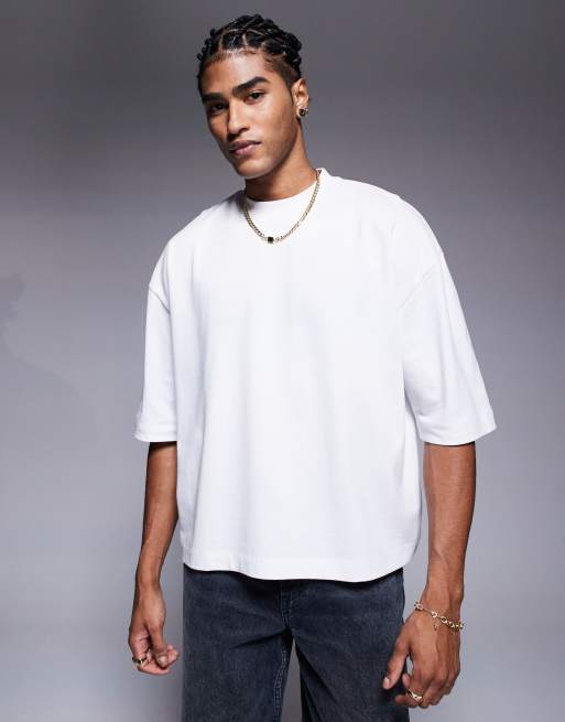 Camiseta blanca de media manga y corte cuadrado extragrande de tejido grueso de ASOS DESIGN