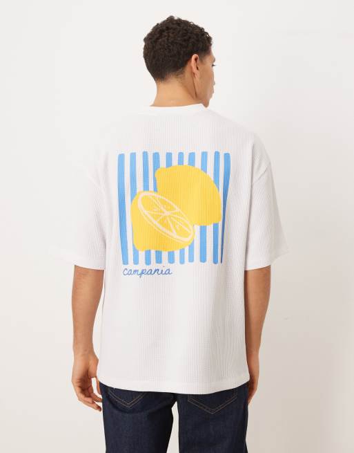 Camiseta blanca extragrande con estampado gráfico de limones y bordado de punto gofrado muy grueso de ASOS DESIGN