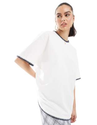 Camiseta blanca extragrande con ribetes ondulados de tejido flameado de ASOS DESIGN