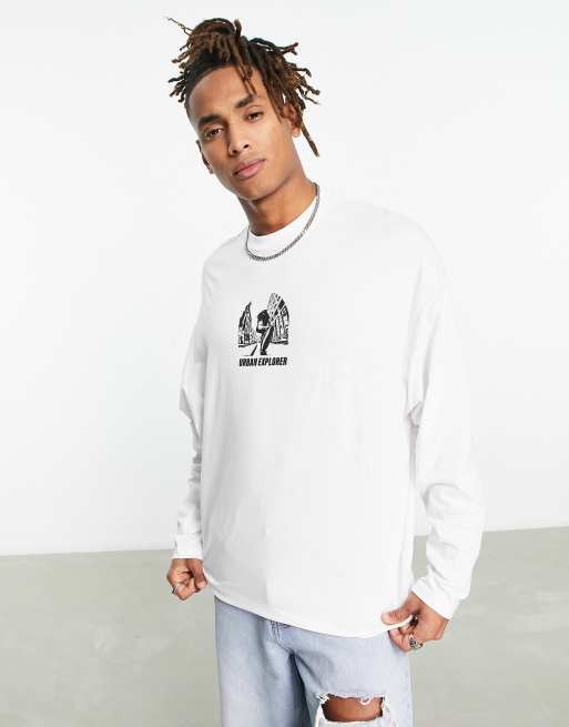 Camiseta blanca extragrande de manga larga con estampado de monopatín de ASOS DESIGN