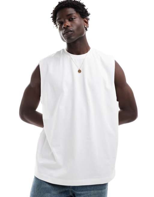 Camiseta blanca extragrande sin mangas de tejido grueso de ASOS DESIGN