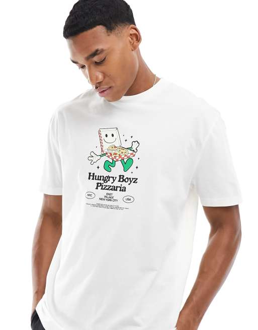 Camiseta blanca holgada con estampado de dibujo en el pecho de ASOS DESIGN