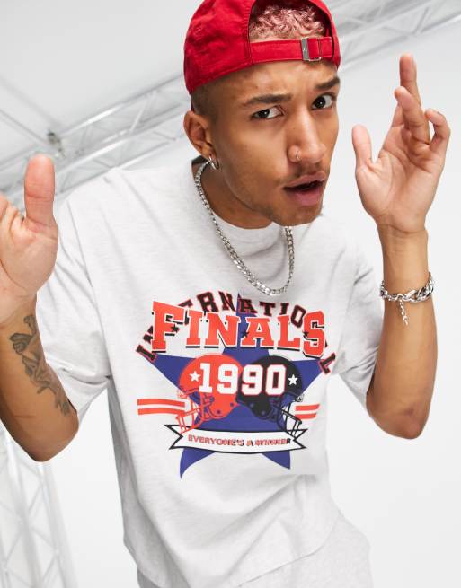 Camiseta blanca jaspeada extragrande con estampado universitario de ASOS DESIGN