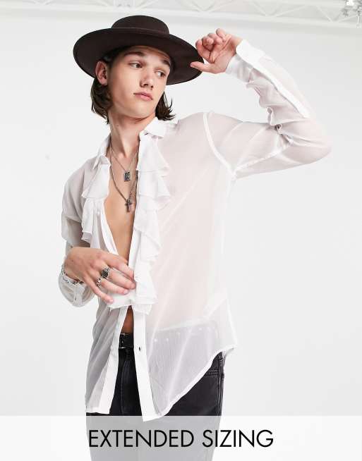 Camiseta blanca transparente con detalle de volantes en la parte delantera de corte estándar de ASOS DESIGN