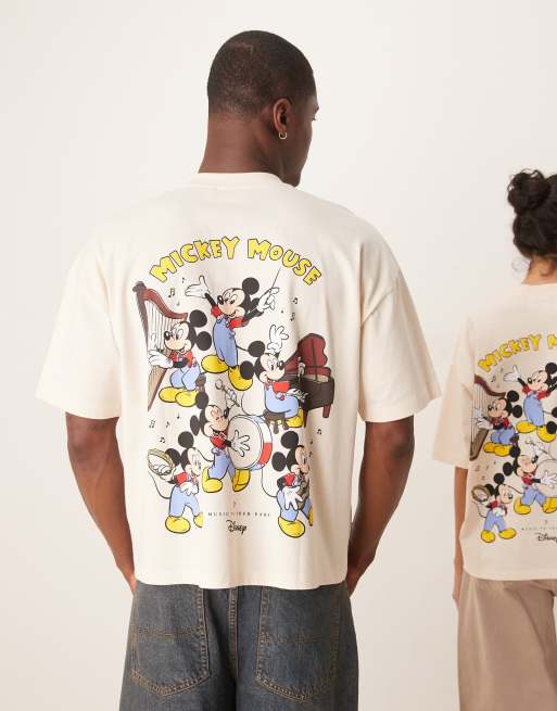 Camiseta blanca unisex de corte cuadrado extragrande con estampados de Mickey Mouse de Disney de ASOS DESIGN