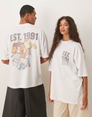 Camiseta blanca unisex extragrande con estampado de "Rugrats" de ASOS DESIGN