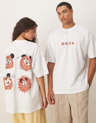 Camiseta blanca unisex extragrande con estampados de Mickey Mouse de Disney de ASOS DESIGN