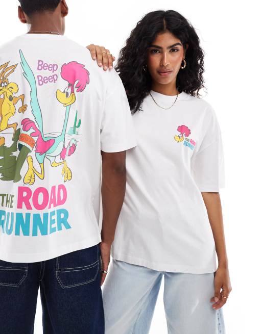 Camiseta blanca unisex extragrande con estampados del Correcaminos de los Looney Tunes de ASOS DESIGN