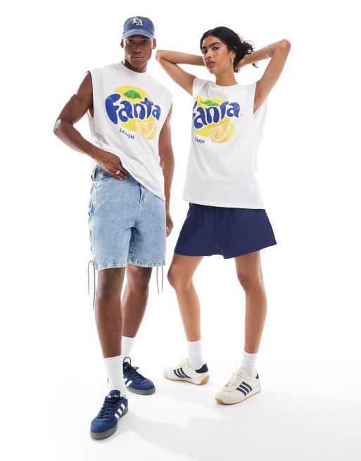 Camiseta blanca unisex extragrande sin mangas con estampado "Fanta Lemon" de ASOS DESIGN