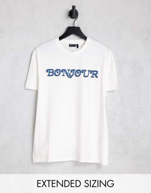 Camiseta blanco hueso con estampado "Bonjour" de ASOS DESIGN